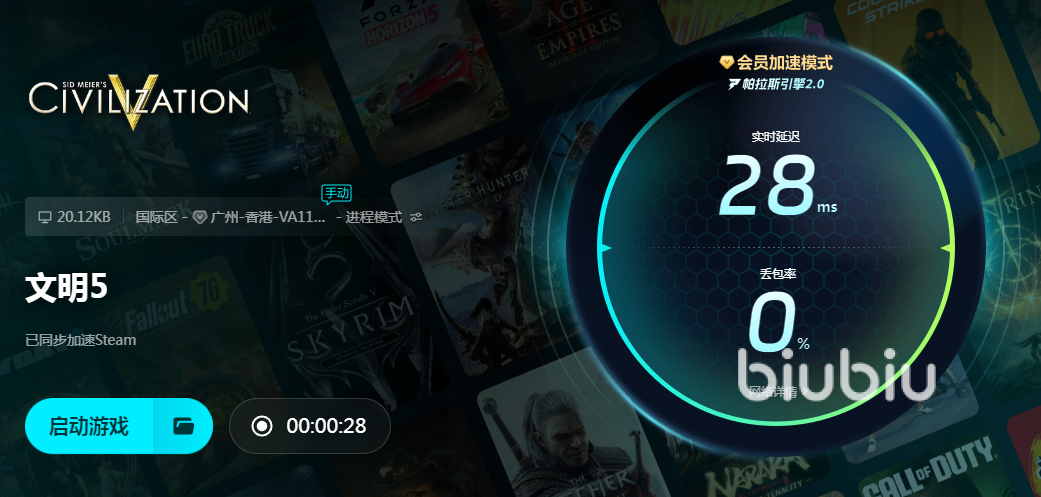 想要更多免费试用的机会,还可以来领取 【biubiu不卡顿】,输入以后账号立马增加3天免费加速时长,全平台的资源都能加速,想玩什么游戏一搜就出来,文明5也在游戏库里面。加速的时候不需要用户自己点击节点,而是由系统的智能节点自己分配线路,操作真的很简单。