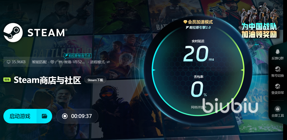 玩游戏用biubiu已经是高级玩家们的共识了,它能打造安全放心的网络环境,加速启动以后网速变得特别快,不仅可以大幅度降低延迟还能长时间维持网络的稳定。并且新用户支持免费加速3小时,还有各种会员购买优惠活动,大学生用户每天最低只要花费0.3元,实在是实惠又好用的一款软件。