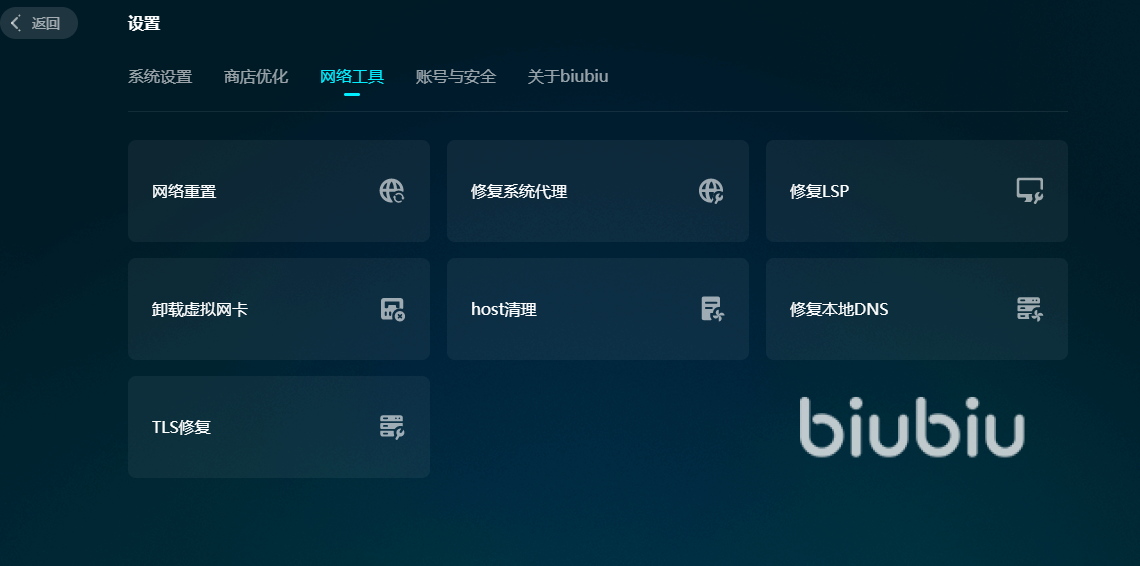 有时候可能网速是好的,但是大家一些设置出问题了,就需要重新调整网关设置,biubiu也可以进行修复的,在设置里面找到就好了。