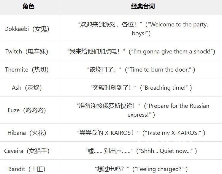 彩虹六号台词大全 彩虹六号围攻台词分享