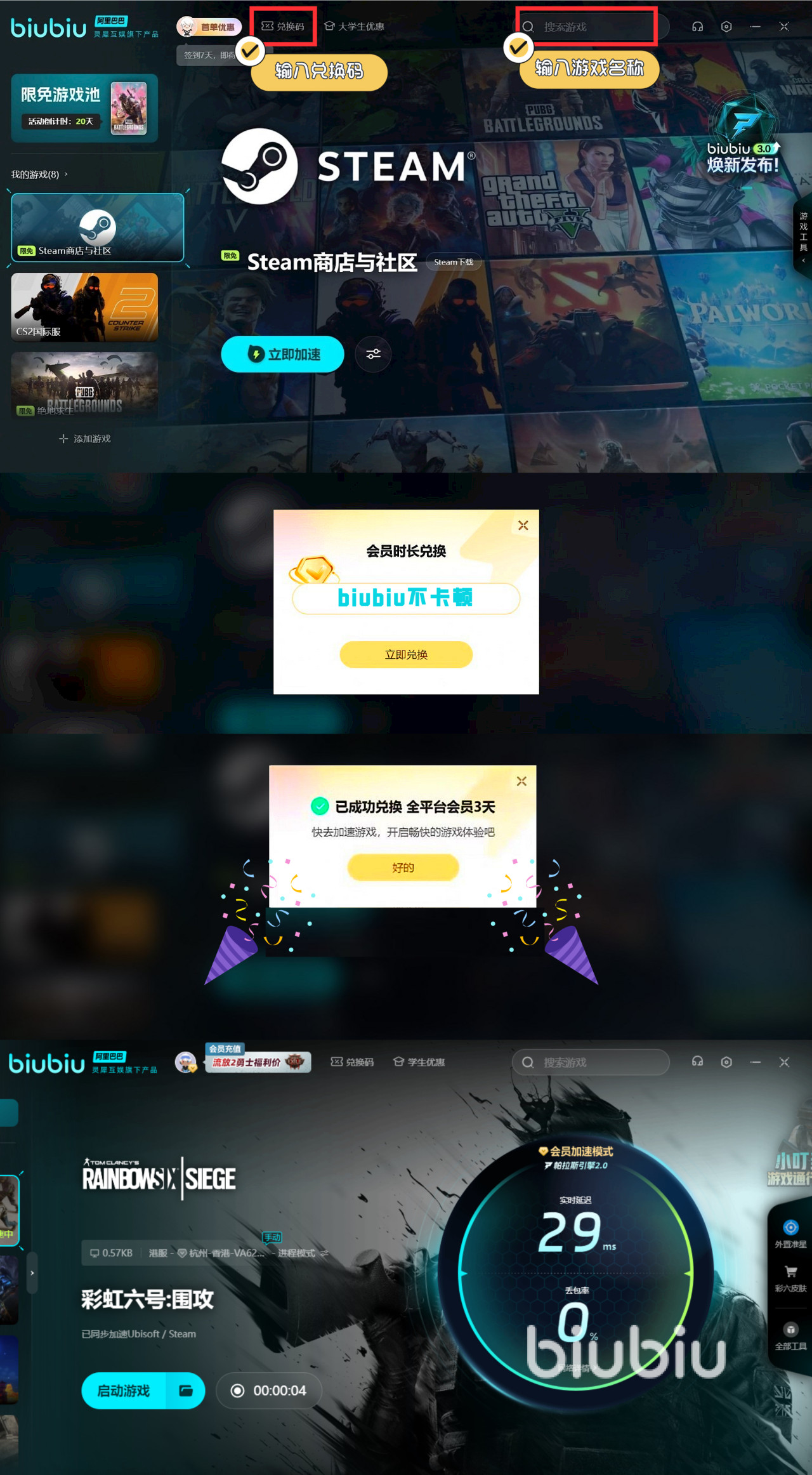 值得一提的是,敌方干员武器的准心和瞄准设备也会在这段时间内失效,这样也就为己方队友制造出了很好的输出环境。但无论是负责打开突破口的thatcher还是队友,如果被网速干扰就容易出现被反杀的情况。那么该如何避免这一问题的出现呢,小编推荐大家使用biubiu加速器。虽然目前仍有很多人觉得加速工具只是智商税,但相信用过biubiu的用户们都会打消这一想法。先体验再购买也是biubiu对自己的自信,小伙伴们通过新手注册就能免费获取3小时加速时间前去体验,后续也能用【biubiu不卡顿】兑换码来领取3天加速时长。