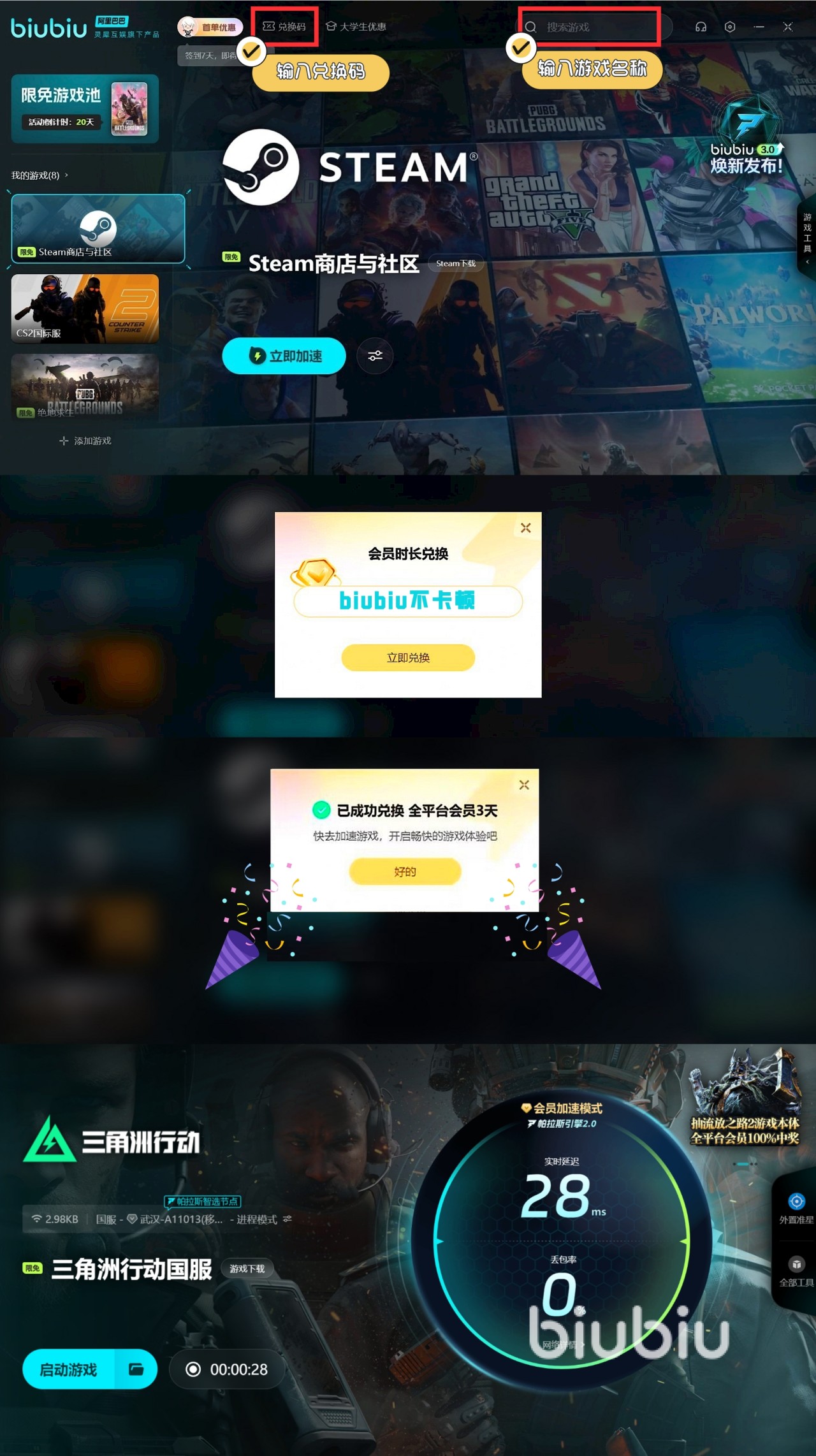 接着就是枪械方面的改造,玩家在进入游戏以后是可以对使用的枪械进行全方面地改造,包括枪械的配件以及使用的武器外观都能进行全面改造,从而让打造属于自己的专属枪支,当然在正式对决的话,没有网络的话很容易卡顿,可以利用biubiu来提高网速,并且新人在注册后便获3小时免费加速,新老用户均可使用兑换码【biubiu不卡顿】可获3天免费的使用权哦!