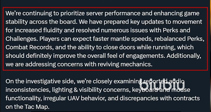 另外乌鸦在推特上还指出了反作弊的问题目前很失败,也给许多被反作弊坑害的玩家重燃了希望,这些更新有些会在1月4日推出,还有一些会在更晚一点的时间推出,各位还需耐心等待一下。