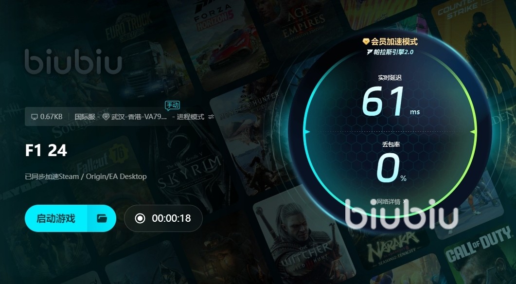 在F124游戏内,玩家们能够看到更多类型的赛车,同时所有的环境设计也是非常拟真的,我们可以在赛车和赛道上看到最真实的设定场景,像雾霾天气,还有雨雪天气,沙漠赛道等等,大家都是要需要着重关注的,游戏还将为我们还原路面反光和夜间的灯光效果,这些细节将被一一呈现,让玩家们都能更好的完成挑战,大幅度强化了整体的真实性。至于大家在体验的时候出现闪退的问题,那么完全就是因为网络不够流畅所导致的。众所周知,这款游戏目前没有国服,体验的话,我们需要进入其他地区的服务器,这其中就会存在一定的限制,玩家们一定要借助biubiu才能顺利连接,这个加速软件应该有很多玩家都听说过,它对于各大用户的友好程度是有目共睹的,新用户在第一次注册结束之后能够直接得到3小时的免费加速时长。