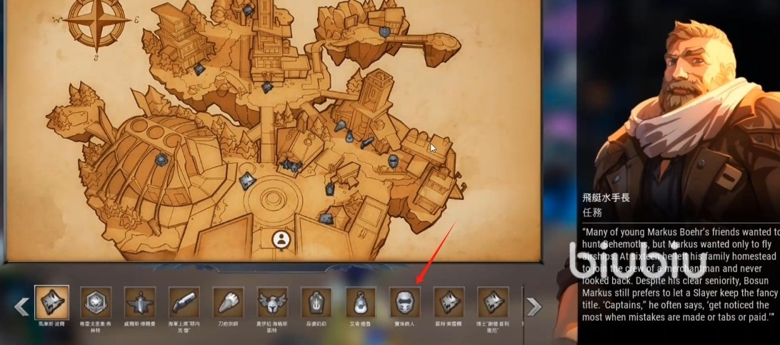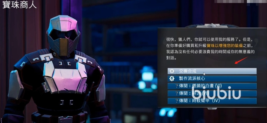 按M打开地图后点击宝珠商人确认其位置后前往找到他,之后与其对话,在弹出的选项中选择交换合成,然后就会进入如下图所示的下一级界面让你提供两个相同等级的宝珠进行合成,除了合成以外,还能在这里用自己的宝珠交换其他同等级不同属性的宝珠。