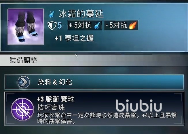 首先鞋子则可以选择冰霜的蔓延,虽然基础防御只有五点,但强化过后数值一样不比彻骨强权差,另外它也自带了一份冰属性抗性,在宝珠选择上使用脉冲宝珠还能在命中攻击一定次数后获得必定暴击的效果,如果强化四级还能额外增加暴击伤害。