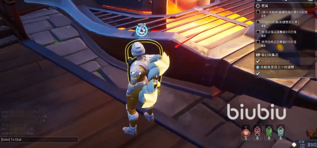 第三个物品是镰刀电池,位置是在出生地点靠后的一扇羊头门右侧,那里有一张小桌子,桌子旁边放着的就是镰刀电池。第四个物品是铁桶,它就在主城npc威尔斯博尔曼身后,他后方有一个熔炼炉,炉子旁边就能看到铁桶。