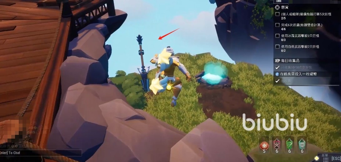 第二个隐藏物品是鱼叉,所在位置是初始登录地点后方,找它的路线也很简单,上线后直接朝后转,然后在朝飞艇起飞点右边的下面跳下去,下去之后即可看到插在草地里的鱼叉。