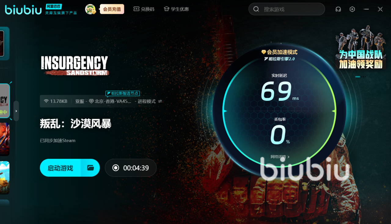 叛乱沙漠风暴的视觉效果犹如游戏名一样简单,模拟现代战场的枪战画面,通过独立类第一人称射击视角,使用狙击枪、冲锋枪等枪械武器,声音特效制造紧张的氛围将恐惧感融入现代战争中,不仅增强游戏真实性,还能体验与团队们大杀四方的快感。但游戏突然卡在任意的加载界面无法动弹呢,就会影响了玩家的兴趣,甚至破坏了团队的和谐氛围。因此普遍玩家会选择名叫biubiu加速器的软件,通过控制网络延迟来稳定且提高整体的网速,减少卡加载界面现象。