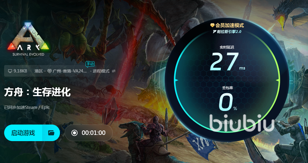方舟进化生存里一共有超50种原始生物,它们看起来凶猛,但只要驯服成功就能变成玩家的宠物,通过训练来培养跟宠物之间的亲密度,还能携带它们一起上场战斗。驯化的前提是要捕捉生物,这个过程十分危险,网速也不能一丁点的延迟,否则就很容易让抓捕行动功亏一篑。好在biubiu会一直帮用户维持好网络的稳定性,确保游戏过程网速都能达到大家的要求,卡死什么的更不存在了。
