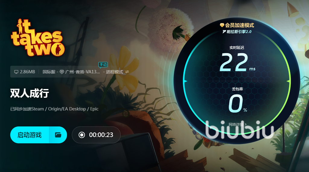 现在大家是否已经明白双人成行延迟高如何解决了呢?biubiu不仅可以让卡顿的网络变得正常,也能让正常的网络变得更快更丝滑,想要追求极致游戏体验的小伙伴都可以尝试,反正现在有免费试用的机会,不用白不用,你说是不是呢。