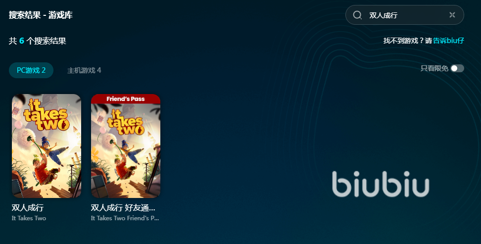 biubiu的资源可是非常强大的,光是双人成行就收录了6款加速资源,端游和主机游戏都能加速。所有游戏采用的都是一键加速的方式,并且通过智能节点匹配线路。在眨眼之间网速提升幅度特别大,不仅没有延迟,速度还变得特别快,感觉不到一丁点的卡顿,玩双人成行别提有多舒爽了。