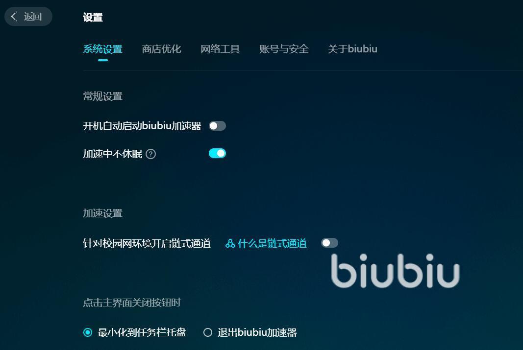 除了基础的游戏加速服务外,平台还为软件安排了许多功能,如果你经常给主机设备加速,那么可以开启加速中不休眠的选项,这样就不用担心应用突然关闭,导致游戏断线了。要是你是住在校园的大学生,开启链式通道,就能改善你的校园网,让你在一个更稳定的环境下游玩了。