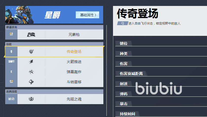 该角色是属于决斗家,所以输出能力各位可以放心的。使用的是一把元素枪,各种花里胡哨的战斗特效让人眼花缭乱。另外传奇登场技能是可以让他进入自由飞行状态的,锁定视野中的敌人进行进攻。