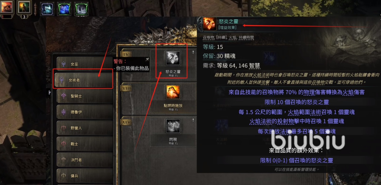 玩家在一开始就能获得第一颗精魂宝石,记得选择“怒炎之灵”。这个精魂的效果非常强大,它能将召唤物的70%物理伤害转化为火焰伤害。当你施放火焰法术时,怒炎之灵会同步召唤出来,配合火焰墙的技能使用,能大幅提升你在新手开荒阶段的输出效率。这样一来,不仅能够让你更轻松地击败敌人,还能让火焰的炙热力量席卷整个战场,迅速清理敌人。