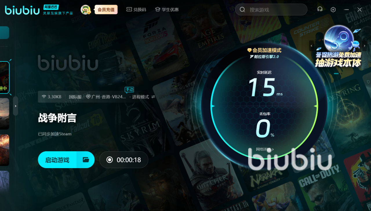 总而言之,讲究配合与战术的战争附言中,稳定的网络环境是畅享游戏的必备条件。如果你正为“战争附言卡顿怎么办”问题感到头疼,不妨试试biubiu加速器,沉浸无缝衔接的战局中,让你在真实比例还原的战场上所向披靡。