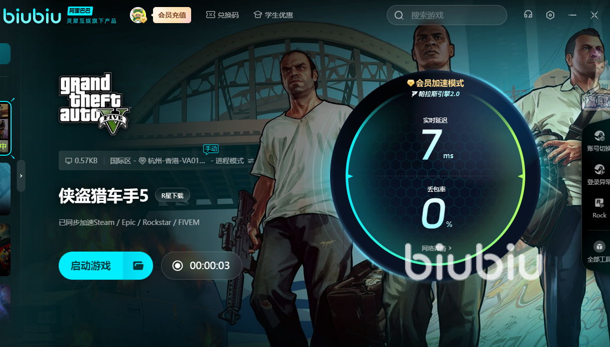 洛圣都是gta5中的背景故事开始的地方,这里充满着各种各样的际遇和混乱,玩家们来到这座城市之后,可以通过利用并调动城市当中各种各样的资源建造属于自己的帝国。因为它的开放冒险探索玩法给大家提供了非常高的自由度,所以衍生出了很多奇奇怪怪的玩法。例如把它当成一个竞速赛车游戏,或是换装换装备的gta暖暖,又或者是享受人生的度假类作品。但无论是哪一种,都需要流畅的网络才能保证顺利进行。朋友们目前遇见的卡顿、闪退等等各种问题,归根结底也就是因为网速不佳而导致的,毕竟大家都知道它是由国外工作室所开发的。