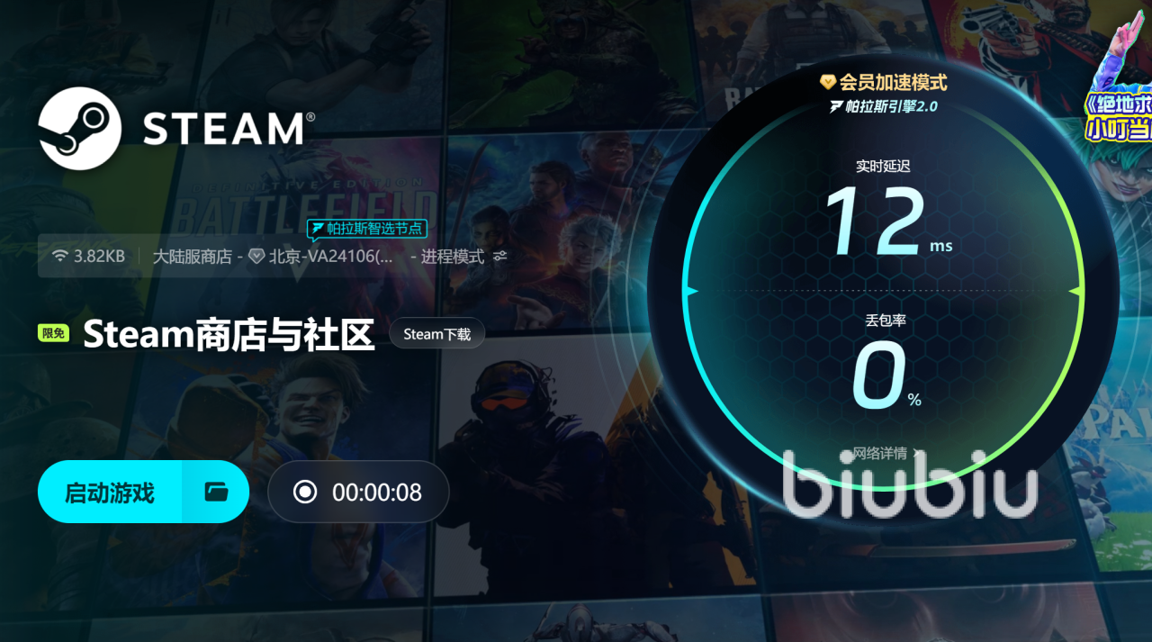 当然biubiu是不会给大家卸载删除的机会的,因为软件本身加速能力足够优秀,打开biubiu后,网速明显变快变通畅,一卡一卡的情况消失了,即使身处弱网状况,biubiu也能轻松应付!针对本地的网络波动,biubiu能及时预判并实时补发数据包,毫秒级的响应速度,让玩家完全感觉不到任何的不流畅。特别是对校园网有显著改善效果,学校的网络使用人数多,网络环境一般不会太好,一些需要精微操作的游戏,不开加速器简直没法玩。