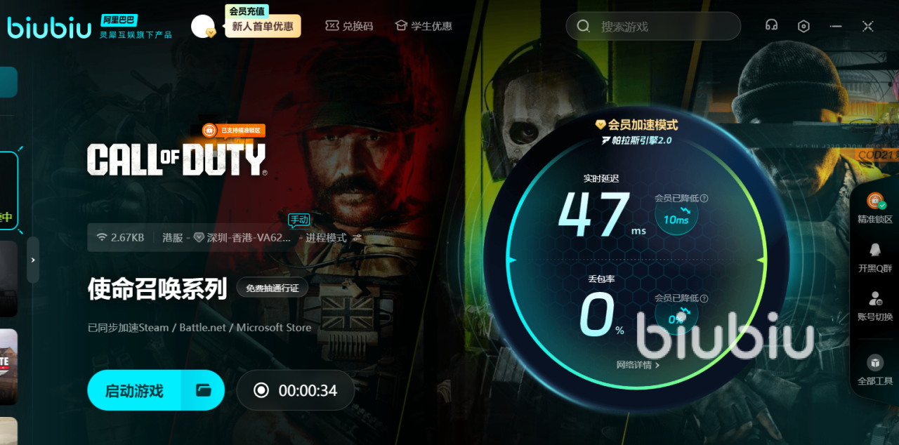 cod21战区鱿鱼游戏联名互动也是大家获取各种新皮肤以及道具的好机会。好工具biubiu已经介绍给大家了,就用这个加速器来让自己的网速变好,在线情况自然也就很稳定了。加上本身一到活动,在线开始玩的人是会变多的,更需要好的网络去抢占网速,那我们就更需要使用了。