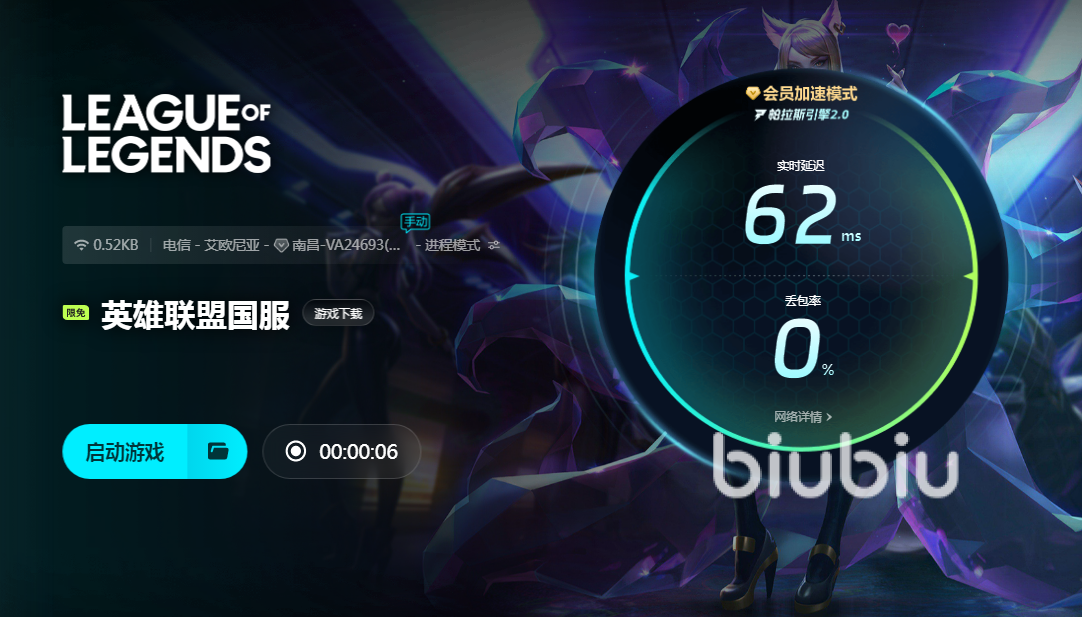 有了biubiu之后,就再也不用担心lol玩到后期就开始卡顿怎么办这个问题了,即使是长时间玩游戏连续多个小时的运行,biubiu也能够始终保持稳定,为广大玩家带来优质的网络优化功能,可以让玩家在低延迟中进行竞技,无论是对线还是团战都能够带来最出色的发挥。