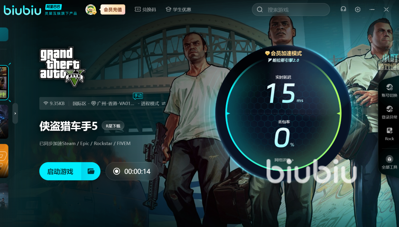 2025年01月03日 15:40 来源:电魂正大蛇丸GTA系列一直以来都拥有超高的人气,凭借真实还原的场景和区域模拟,俘获无数玩家的心。尤其是GTA5给玩家带来独一无二的沉浸体验。不过,不少小伙伴会问:“gta5必须要加速器吗?没有加速器能进线上模式吗?” 由于直连经常出现卡住或连接失败的问题,今天小编带来一款稳定好用的加速工具——biubiu加速器,感兴趣的小伙伴快来看看吧!