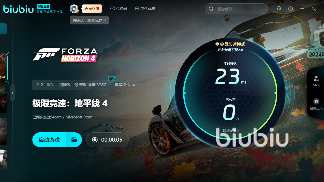 地平线4是款众人皆知的海外佳作,所以如今仍然暂时还没有上线国服。为了获得成为赛车手的资格,大家可以使用biubiu,加速后就能化身芝加哥车神。新用户的话可领取3小时的免费加速,另外新老用户通过【biubiu不卡顿】,就能额外领取三天免费加速。要是赛车途中太卡的话,有可能会撞到墙壁,甚至飞出赛场。最好用上加速器,因为这样才能稳定驾驶控、控制好你的车辆,不让它摇晃的太厉害。