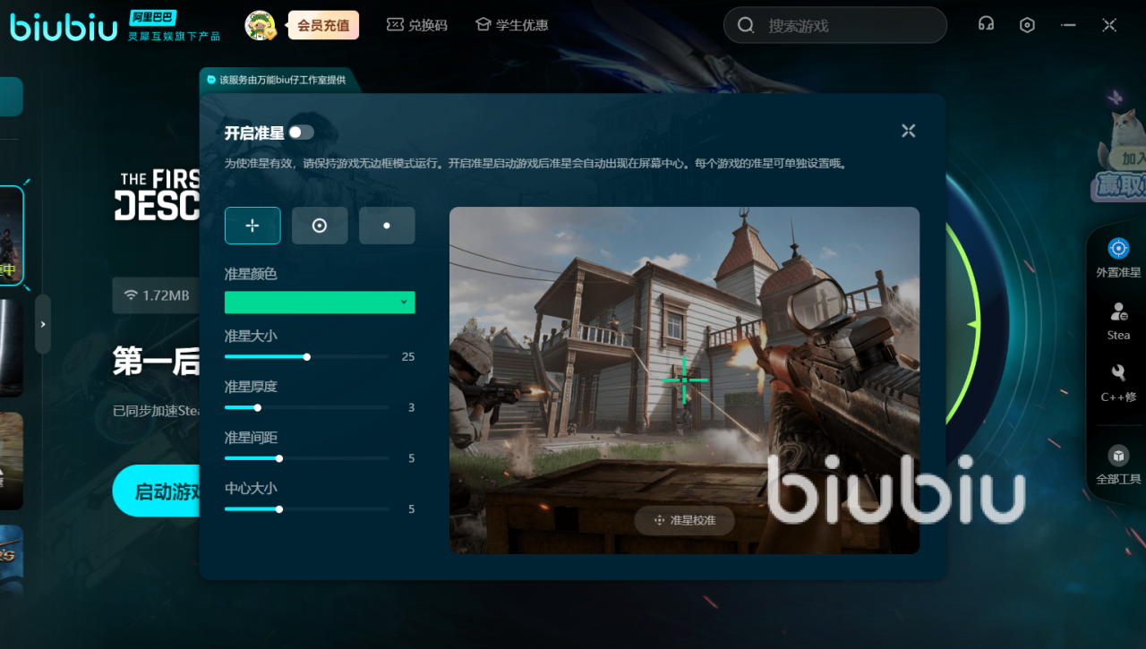 贴心的是,biubiu还配备了强大的网络修复工具,就像一位随时待命的“维修员”,帮你解决常见网络难题。比如为这个射击游戏提供了准星支持,操作方式同样简单直观。用户可以在右边的工具栏中,提前设置或者开启准星的位置,通过直观的图指引快速上手,几分钟搞定,让瞄准标志辅助你收下比赛胜利。