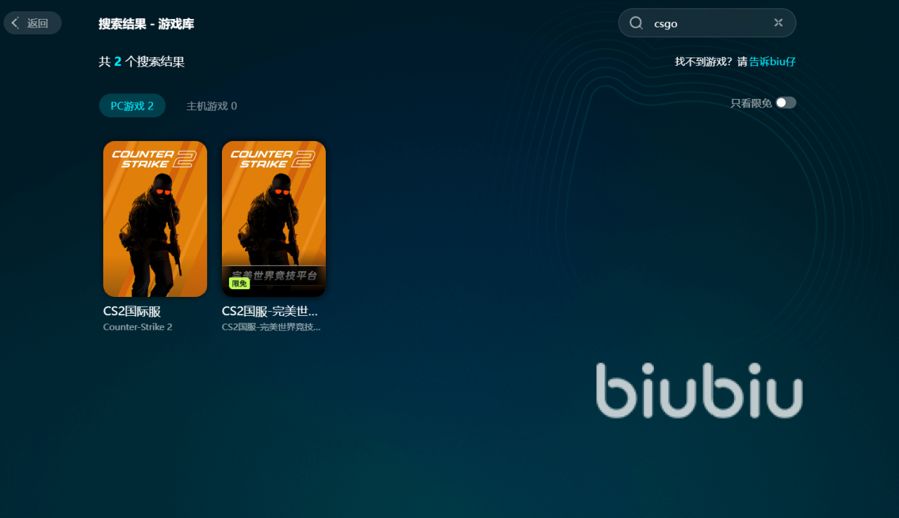 值得一提的是,csgo与cs2共享同一款游戏客户端,所以大家只需要在biubiu的搜索页面进入“cs2”,即可快速找到并启动加速。它支持加速的类型也非常丰富,比如cs2的国服和国际服各大区都有,各位小伙伴按需点击即可。