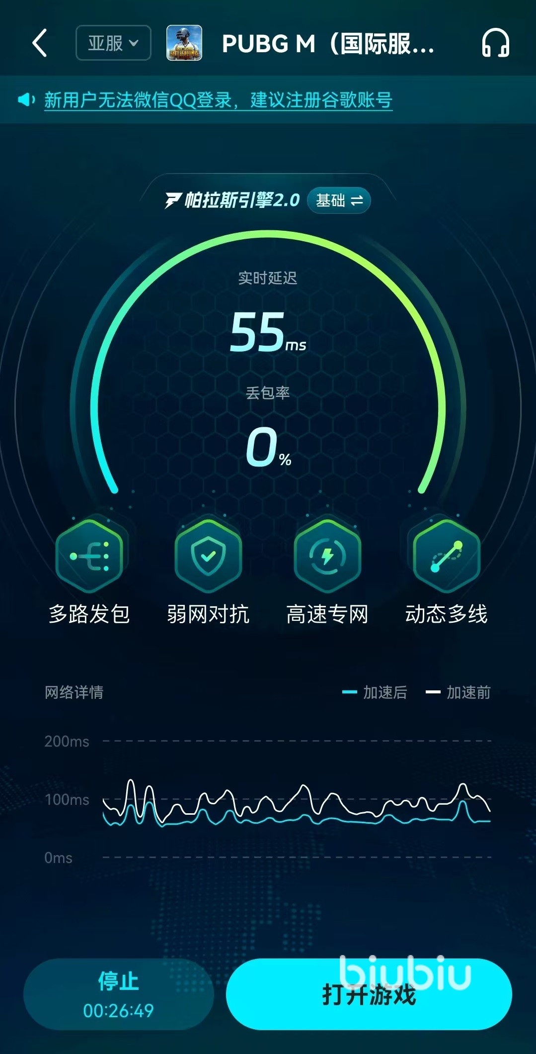 如果要想顺利在玩手游的时候登录国际服,biubiu加速器的优化功能是必不可少的辅助手段,因为如果由玩家自己去连接,很有可能面临连接失败,即使连接上也会出现延迟过高等情况,还会经常面临卡顿闪退,这也是困扰很多国区玩家的地方。而有了biubiu优化功能后,就可以利用biubiu自主打造的覆盖全球的专线,来实现快速连接,可以突破国区连接海外服的诸多限制和壁垒。在数据交换的时候也能够利用专线来进行传输,这样可以做到快速稳定高效,自然也就降低了延迟,不会出现在国际服中延迟过高无法进行正常操作的情况。