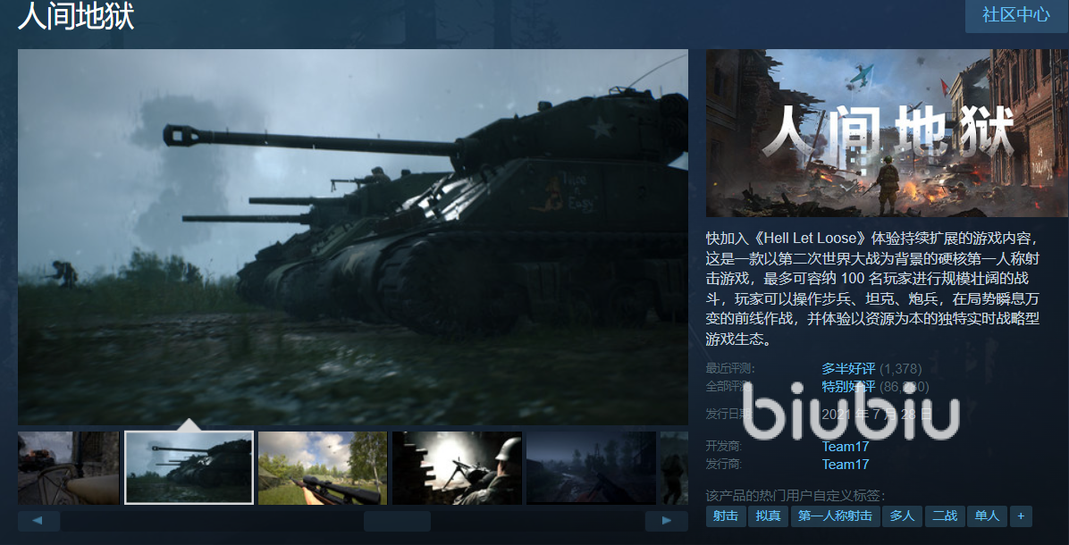 人间地狱是由Black Matter Pty Ltd公司开发,Team17发行。是一款背景立足于真实二战时期的射击游戏,这款游戏目前已经发行,大家可以前往平台购买体验。