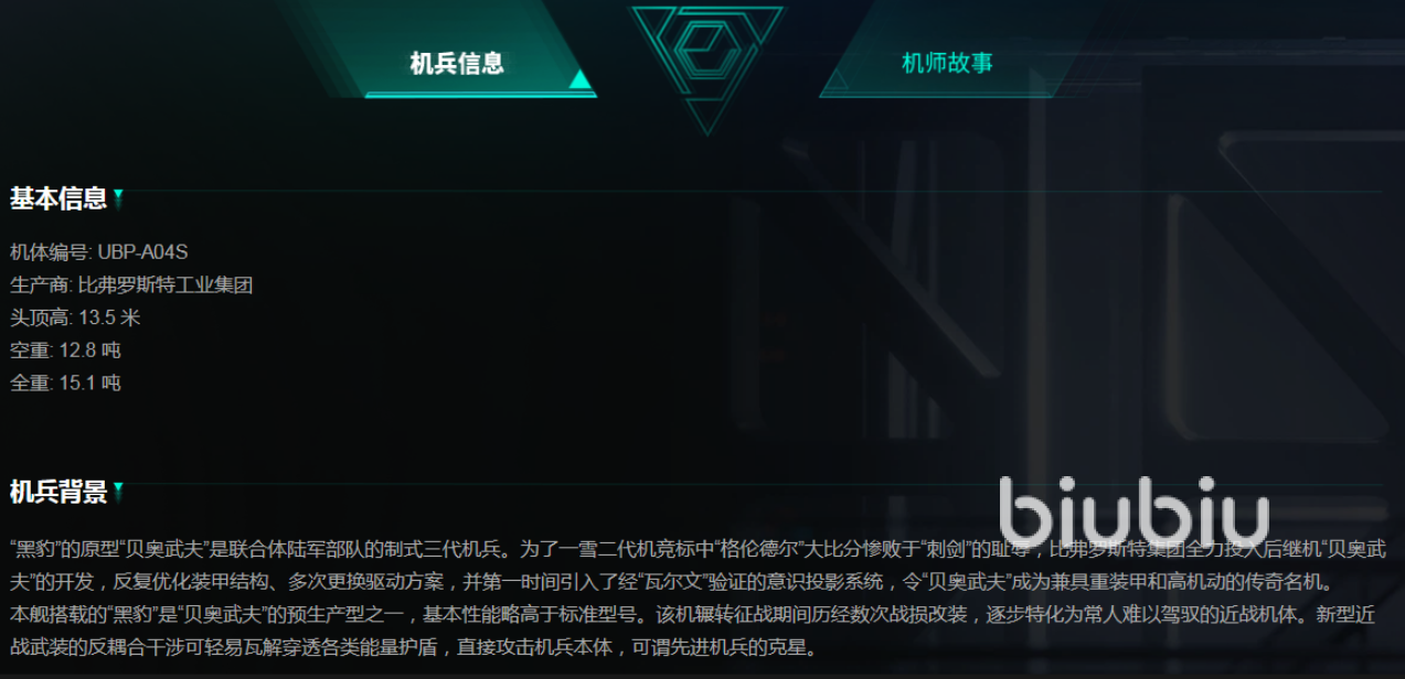 在这个游戏的设定里面,机甲被称为机兵,都是有来源的。黑豹的生产商是比弗罗斯特工业集团,整个高度是达到了13.5米的,全重更是达到了15.1吨。