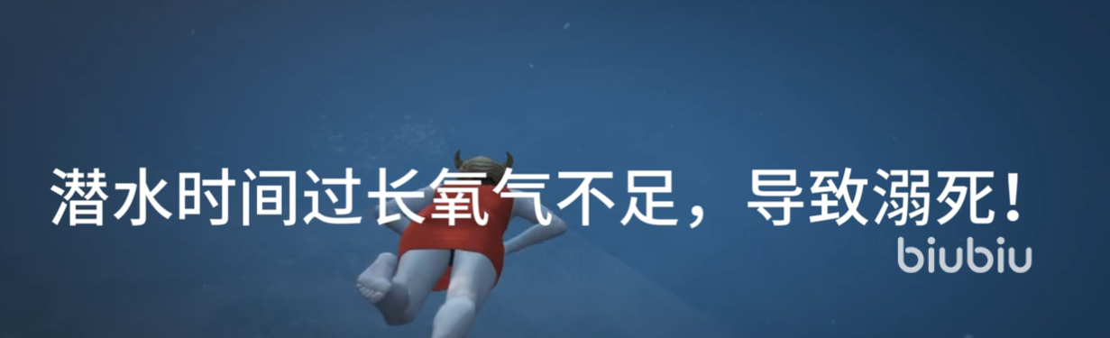 这个过程并不是瞬时的,可以理解成为我们头往下的向前游,差不多需要2-3秒才可以完全潜入水底。角色潜水时间也不能太久,不然是容易缺氧的。