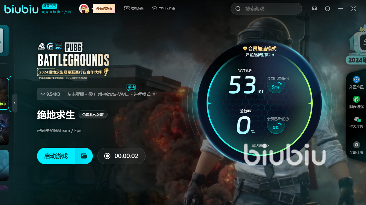 上面给大家推荐的吃鸡加速器现在点击一下就可以安装了,而且还是24年官方赛事的重要指定加速器,新用户注册完成实名就可以获得三小时的加速时长,后续通过输入【biubiu不卡顿】可以再次获得72小时,和好友一起畅快吃鸡不成问题。而且针对可能大家在玩吃鸡的过程中遇到的问题全部都设置了游戏工具按钮入口,比如外置准星、脚步增强以及卡大厅修复等等,开启之后能够解决返回大厅时的卡黑屏卡加载仪加载缓慢的问题。