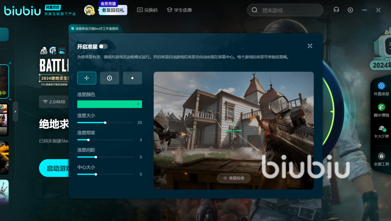 如果你在PUBG的对战中总感觉鼠标不跟手,拉枪吃力,这时候不妨打开biubiu加速器的【外置准星】功能。通过调整准星的位置、颜色等个性化设置,帮助你在开镜对狙时更加精准。同时,由于biubiu显著降低了网络延迟,整体的对枪手感也会更加顺滑,狙击操作会变得格外丝滑。