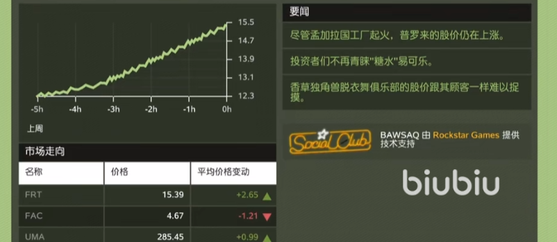 2025年01月14日 13:57 来源:炎枪思大钳蟹在gta的线上版本中,有很多玩法在现实世界中是可以见到的,加上我们在玩的时候,很大的一个目标就是赚钱,所以整个游戏体验还是很现实的。很多新手初入这个社会,赚钱特别难,也觉得很慢,gta5股票赚钱攻略大家就很想知道呢,毕竟在股市当中,运气好一夜就可以暴富了。