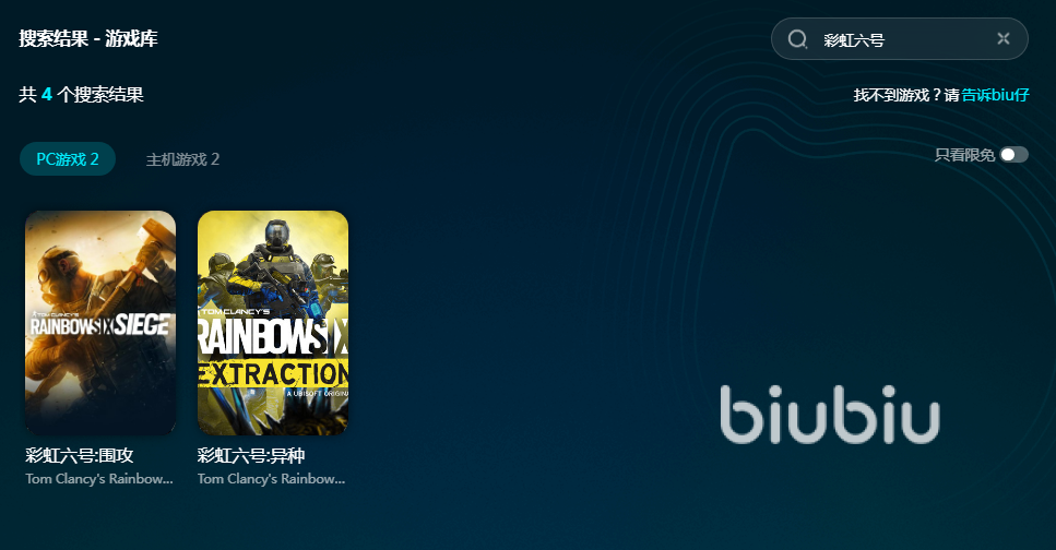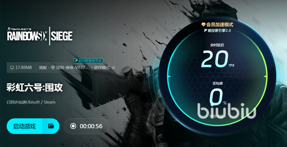 想要从根源上解决它,只要用biubiu加速器就好了。新用户先免费加速3小时,它可以加速彩虹六号围攻以及其余游戏,游戏库里容纳了上万款资源,国服游戏海外游戏应有尽有。还能使用【biubiu不卡顿】来兑换获得3天免费加速,免费时长那么多,大家可以好好来玩游戏了。