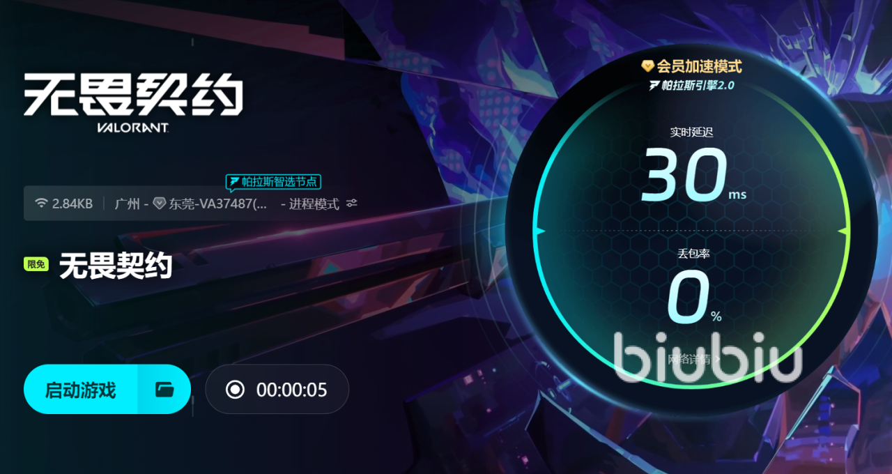 利用biubiu加速器的加速功能,基本上无畏契约的国服以及国际服的体验基本上都是流畅的,也不会出现打团和射击的时候卡顿,自然就想要成为biubiu的长期会员,刚好biubiu对于新用户都能提供额外优惠的。