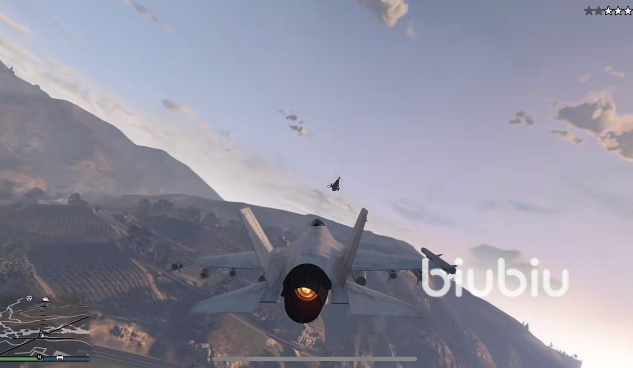 这里的战斗机有很多种,找到之后下车就可以跳上去开启了,由于有无敌可以顺利的进入战斗机舱内部,就可以开走天煞战斗机了,这个时候还需要躲避军事基地的防空系统,甚至还有直接锁定飞机的导弹,可以将视角拉到最上方然后一直左右摇摆。也建议大家开启加速工具才能这阶段的操作更加流畅,上面推荐的biubiu现在新人注册免费加速3小时,新老用户输入兑换码【biubiu不卡顿】都可兑换3天免费加速。