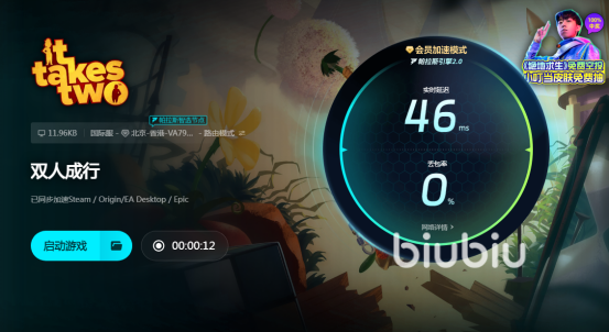双人成行自从退出之后就成功封神,与大制作游戏相比较起来安装包比较小,但内容相当丰富,所以在各大平台上成为热门的焦点。游戏轻松易上手,而且受众较为广泛,各种设计操作相当合理,即便平时不怎么玩游戏,也能够从中获得优越体验并快速操作。有趣的风格多样化体系,让不同玩家产生共鸣,适合情侣、亲人、朋友,将在游戏当中度过难忘又非常欢乐的时光。在冒险闯关时,很多机制都需两位玩家共同完成,作为真正意义上的双人游戏好玩易上头,不过对网络要求较高,如果网络延迟较高,那么会出现卡顿的情况,严重的话会直接闪退,被迫退出游戏,小编尝试可以使用biubiu这款加速器来改善网络,让你丝毫感受不到卡顿延迟的情况发生。