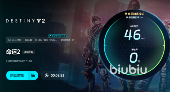当获得免费使用权之后,可在线搜索游戏名称,点击立即加速就会智能选择节点。命运2基本上都是国际服,开启加速器能够有效降低延迟,将延迟率控制在50ms以下,如果没有开启加速器,连接国际服比较困难,网络极其不稳定,很容易出现闪退问题,甚至在登录的时候都会直接卡在加载页面,无法移动,biubiu可成为解决这些问题的福音。