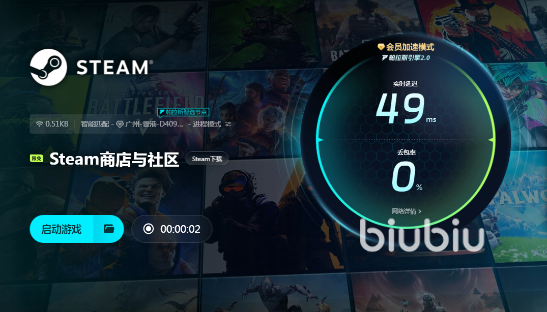 Biubiu加速器现在支持免费试用,大家可以先注册一个新账号,因为现在注册后直接能领取三小时会员时间。如果感觉还不够另外一项福利千万不要错过,那就是使用兑换码【biubiu不卡顿】能兑换三天会员时间,每个号都能用一次。这些使用时间已经足够支撑大家用biubiu加速器加速steam商店,然后下载多个大型游戏。Biubiu对于steam平台的主要作用有两项,第1项是解决在国区登录时候遇到一些失败问题,然后就是在下载过程中,让网络速度变得更加通畅,因为现在很多游戏体量非常大,动辄上百g,如果仅凭自身的网速下载,要经历很长时间,中途还会遇到掉线。而有了biubiu之后,这些就都不用再担心,整个过程变得既顺畅又快速,还不用担心掉线问题。