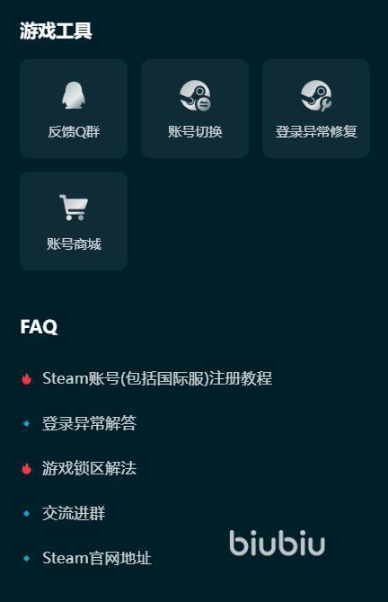 为了方便大家使用,平台还添加了一些实用的小工具,当你在登录Steam的时候,出现了账号异常的情况,可以使用登录异常修复服务就能解决这个状况,你还能再应用内随意地切换账号,当要和好友开黑时,有了这个服务后,就不用频繁地切换软件了。此外,平台还把使用Steam时常见的问题汇总在了一起,大家点进去就能找到解决方法。