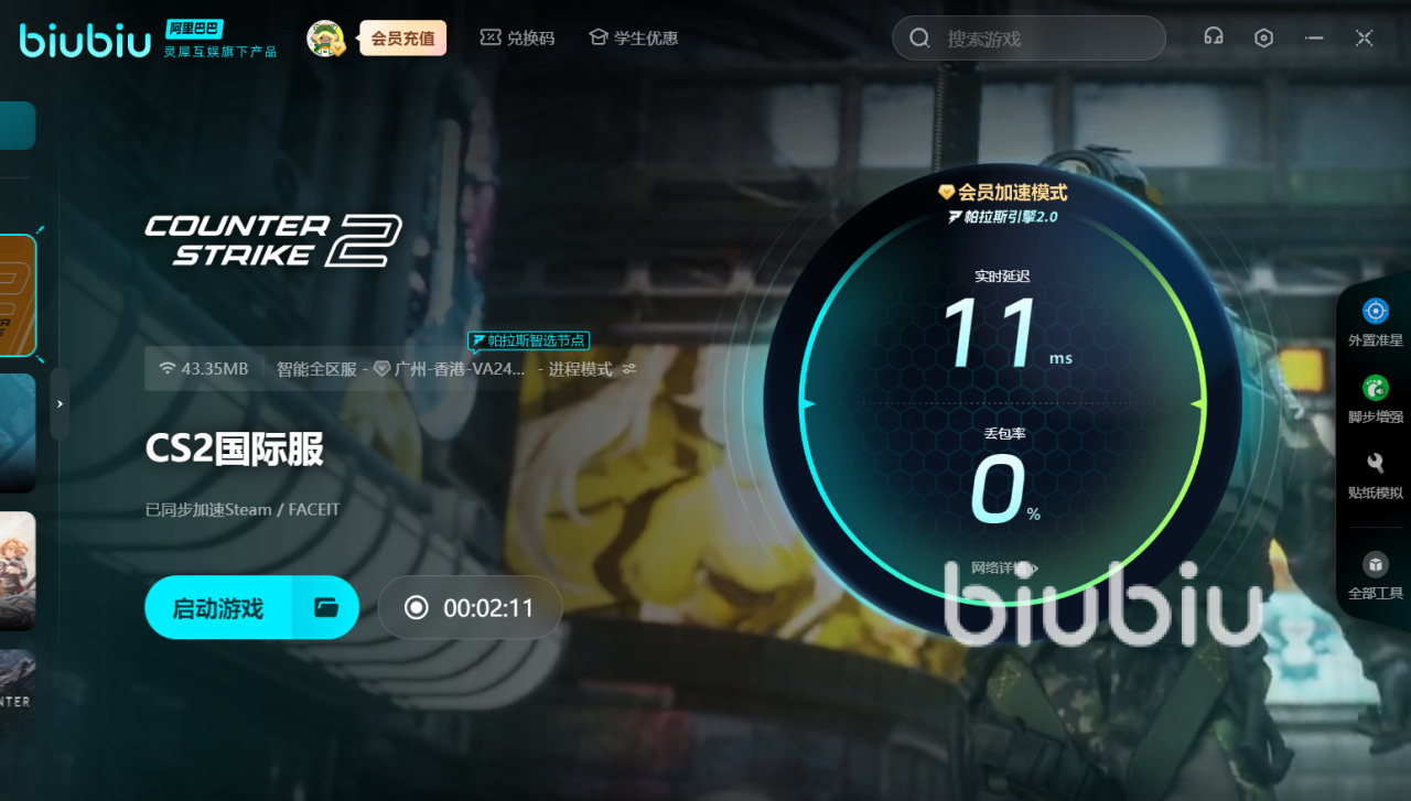 csgo的新引擎升级后变成cs2,游戏画面、光影效果、动画流畅度等方面都得到了大幅度提升,而这些精美的设计和细腻的战术布局也给玩家带来了全新的游戏体验。但正因为游戏的要求更高,稳定的网络变得至关重要。如果网络不稳定,卡顿、掉帧的情况就会频繁发生,直接影响战斗中的反应速度,甚至可能错失致命一击!而这时,biubiu加速器就成了拯救战局的关键。