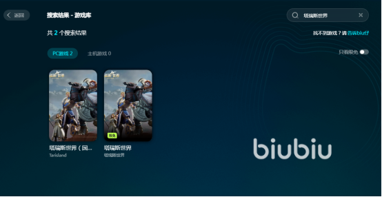 Biubiu是款海量游戏库,目前超过2万多款游戏都能在线搜索,除了有国服专区之外还有其他外服游戏。当前推送出限免游戏池,很多热门国服都处于限时免费状态,目前塔瑞斯在没有会员的情况下,也可限时免费畅玩。