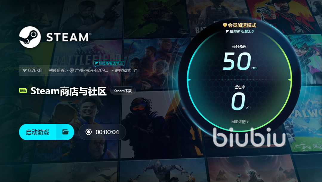 无论是这款游戏正式上线还是进行测试,大家都可以通过steam平台来进行客户端的下载,这是这种大型游戏下载最为方便的途径之一,而且是可以进行加速的,也就是让速度变得更快。首先大家先打开biubiu加速器,然后从中输入steam平台,就可以直接找到商店和社区选项,点击之后进入到加速界面中,在这里直接对steam商店功能进行加速,那么在下载各种客户端都会方便很多,下载速度加快,并且中途不会出现掉线,是下载各种大体量游戏非常出色的操作。而且在后续游戏运行中也可以使用同样的方法去优化这款游戏,使游戏中的延迟降低,不容易出现掉线、卡顿等问题。