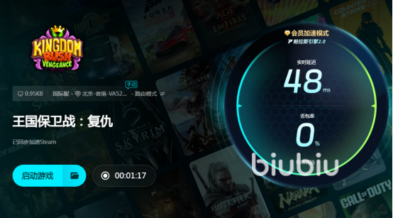 王国保卫战闪退的处理方式比较简单,由于网络问题所致,只要下载安装包较小的biubiu就能够全方位解决,此应用时刻保持极低延迟,而且又推出弱网对抗模式,毫秒级响应解决方案有效应对卡顿闪退。