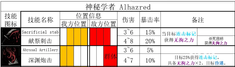 献祭刺击技能可以造成3-6点的伤害,杀死敌人可以得到无拘之力。深渊炮击技能则是可以对敌方后排造成群体攻击。恶魔牵引技能,则是可以清除尸体,并且使目标获得连击标记。