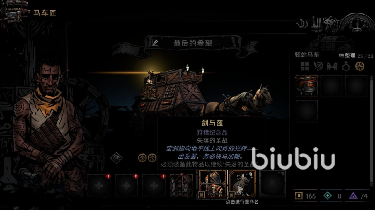 随后,玩家需要带着卷轴帮助难民触发迪斯马问路剧情,获得金色地图,并在囤积者处用金色地图兑换牢大的祝福之剑。需要注意,必须在马车上装有牢大的头盔时,才能完成前面几个步骤并获得交换用的地图。