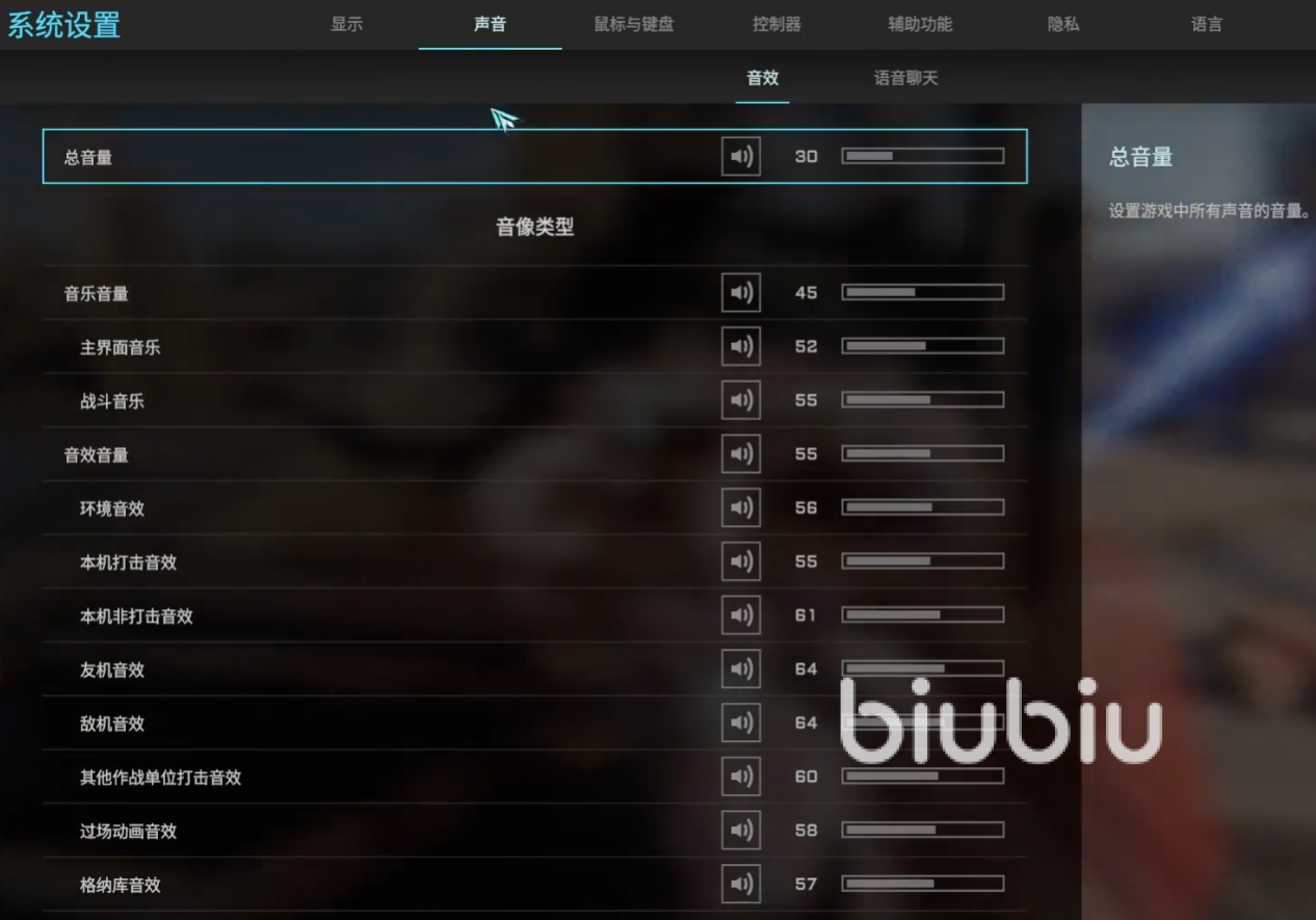 然后关掉播报的任务声效,其实也不难。可以直接打开系统设置中的音效,然后再将总音量下拉至最低就可以实现了。不过这样你就听不到游戏中其他的声音,最好还是关掉周围的环境音效,这样就只会留下打斗的声音,让你不会被任务播报给吵到。