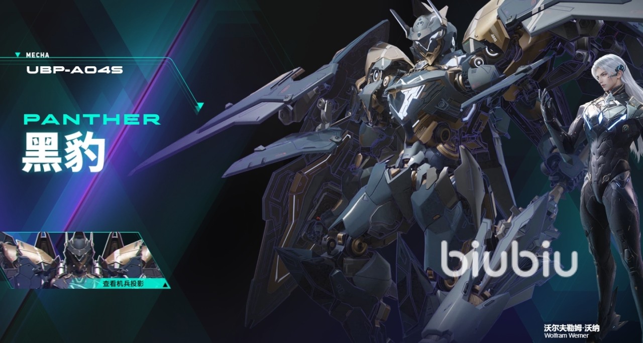 2、黑豹。这是一架擅长格斗的机甲,装载的炮弹能让机甲以骑兵形态在战斗场景中肆意穿梭冲刺;